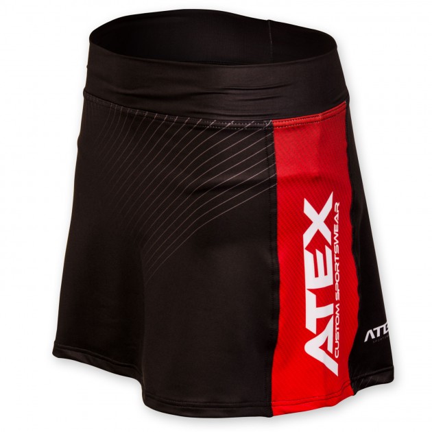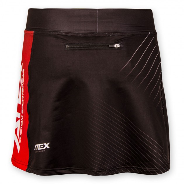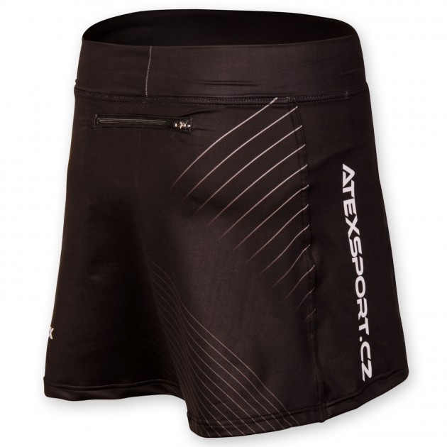 Dámska športová sukňa je mierne rozšírená, anatomicky tvarovaná, má mäkký elastický pás, všité nohavičky a praktické vrecko na zips na zadnej strane, ktorá je mierne predĺžená.