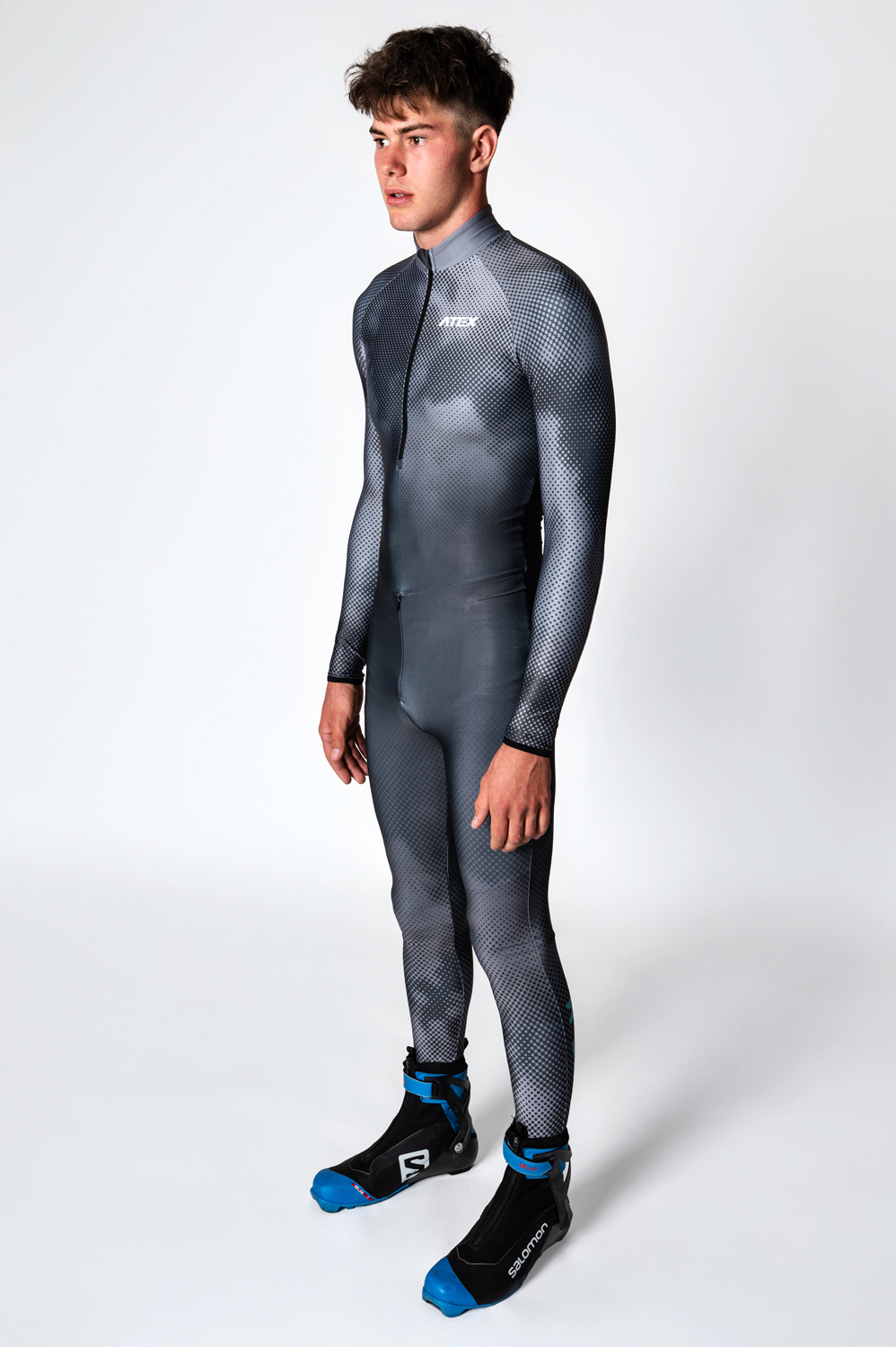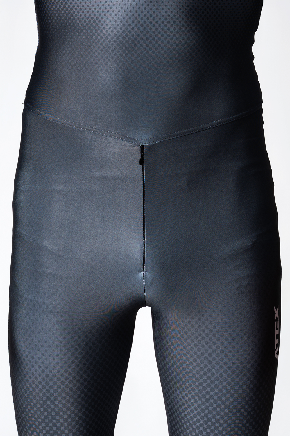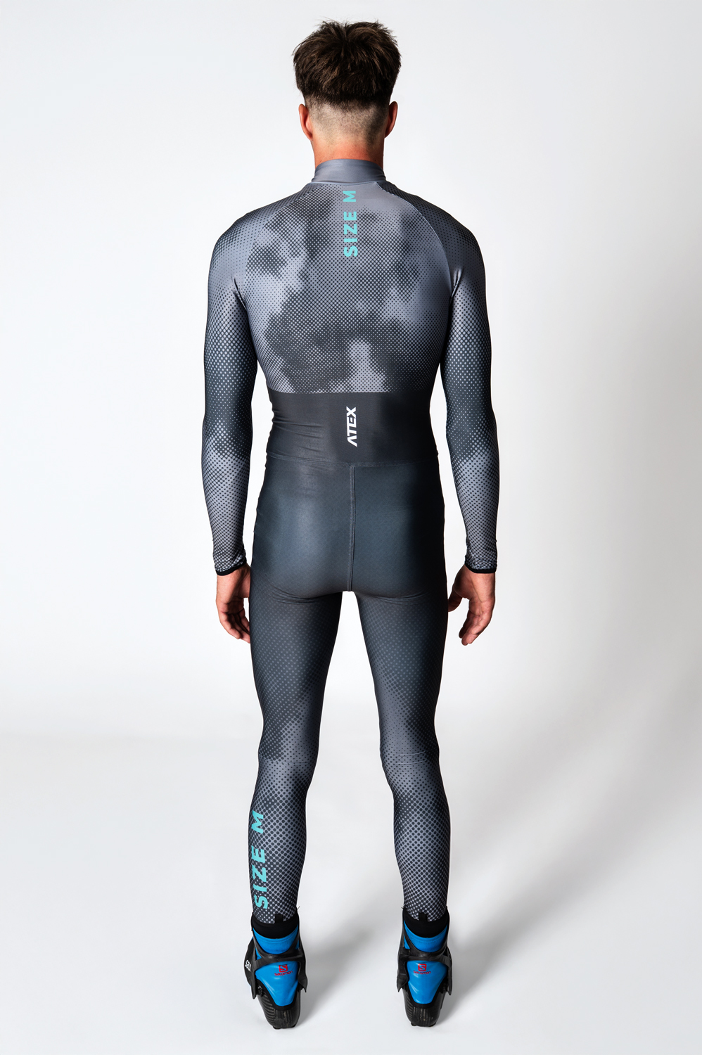 Strih obleku je priliehavý a anatomicky tvarovaný. Stojáčik je podšitý elastickým hrejivým materiálom, vpredu je z dvoch tretín podšitý zips s krytím, nohavicová časť má krátky krytý zips a oblasť kolien je podšitá a zosilnená. Spodný okraj rukávov a nohavíc je ukončený pásom.