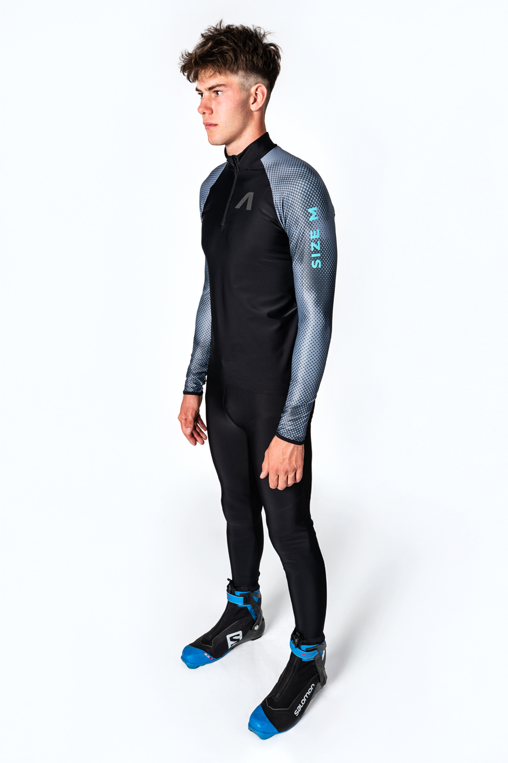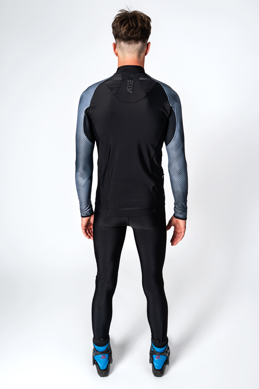 Vrchná časť dvojdielnej kombinézy na bežecké lyžovanieSPORT. Dres má priliehavý strih a je vyrobený z elastického materiálu ESPAN v kombinácii s ďalšími materiálmi použitými v detailoch. Na zvýšenie pohodlia je spodná časť stojačika podšitá zatepleným materiálom ROUBAIX. Materiál MESH, ktorý má sieťovanú štruktúru na zvýšenie priedušnosti, je použitý na panely rukávov v zadnej časti podpazušia a na panel v strede rukávov na chrbte (nie na detskej verzii).