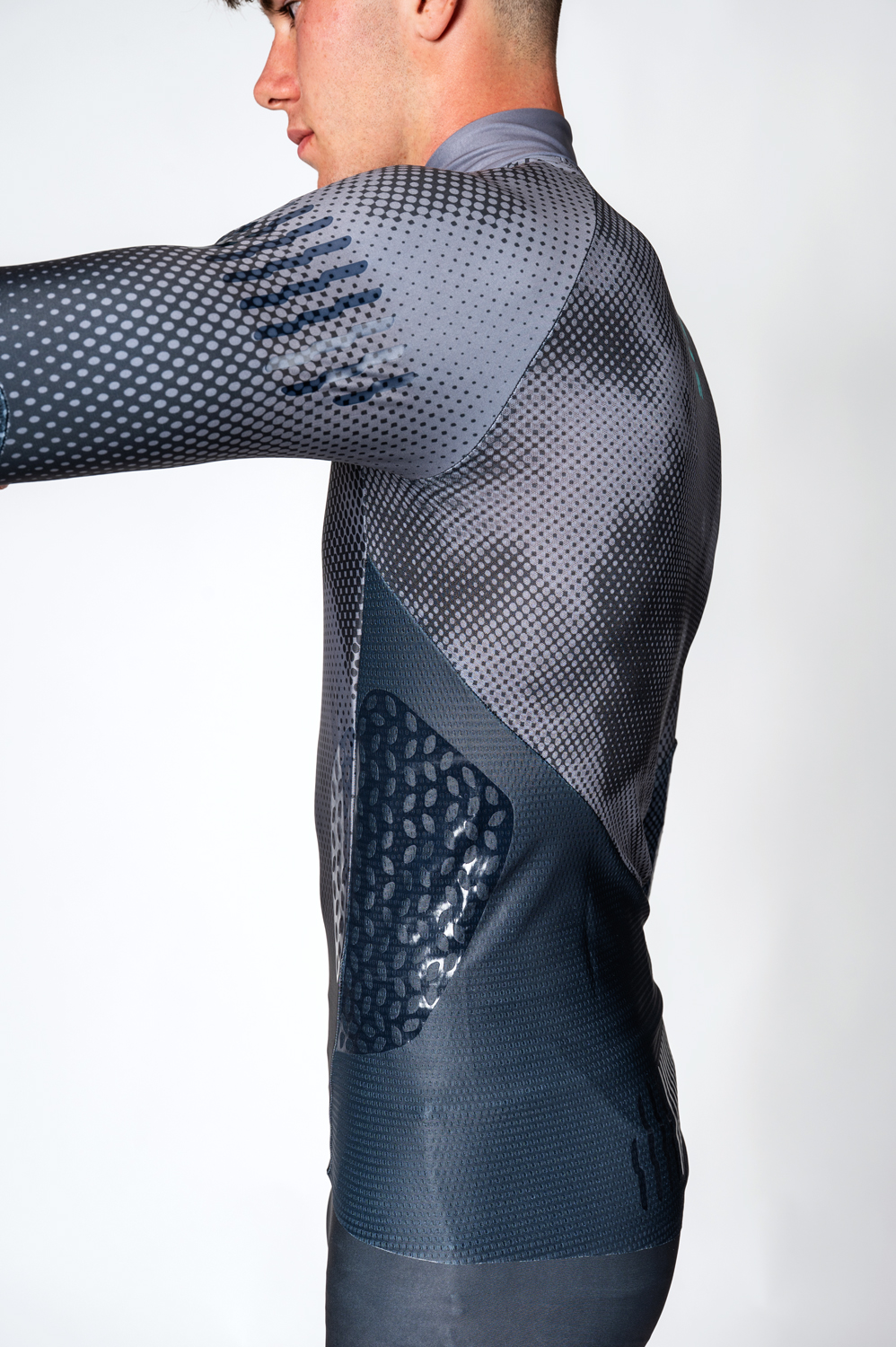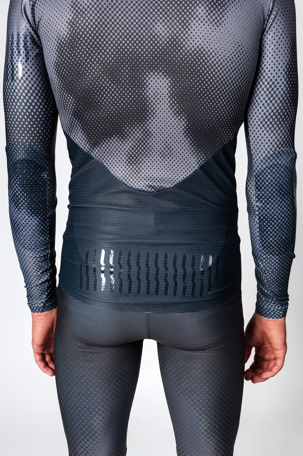Stredový panel dresu a horná časť rukávov sú vyrobené z materiálu ESPAN FIT - prispôsobivého, mäkkého materiálu so zvýšenou odolnosťou proti oderu. Bočné panely, spodná časť rukávov a chrbát sú vyrobené z materiálu VELARO LIGHT, ktorý má aerodynamickú štruktúru, ktorá podporuje cirkuláciu vzduchu a rýchlu ventiláciu a zároveň zostáva dostatočne pevná. Na zvýšenie priedušnosti sú horná časť chrbta a podpazušie vyrobené z MESH CUBE, jemnej sieťoviny, ktorá poskytuje maximálnu voľnosť pohybu a dokonale sa prispôsobuje tvaru tela