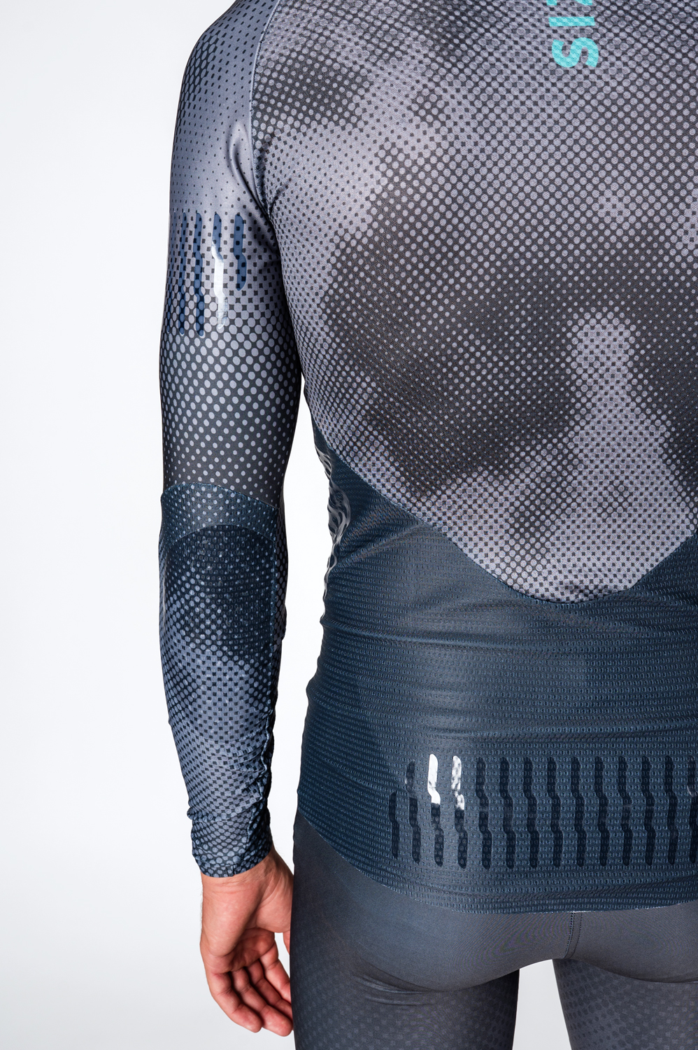 Dres má prepracovaný, veľmi priliehavý strih, ktorý pevne obopína telo. Kombinácia funkčných materiálov a premyslených detailov spĺňa očakávania pretekárskeho výkonu. Dres je vybavený krátkym podšitým zipsom s krytkou. Stojáčik pri krku je vpredu znížený a z vnútornej strany je podšitý materiálom odvádzajúcim pot pre väčšie pohodlie. Raglánové rukávy sú kĺbové a zakončené lepenou technológiou bez nití. Trup sa skladá z troch panelov - stredná časť je mäkko zakončená podlepením bez nití. Zvyšok spodného okraja dresu je podlepený protišmykovým silikónovým pásikom, ktorý eliminuje posúvanie dresu počas pohybu. Súčasťou dresu sú protišmykové biatlonové úchyty na zvýšenie stability pri manipulácii so zbraňou, a to na bicepsoch, bočných paneloch a oboch lakťoch.