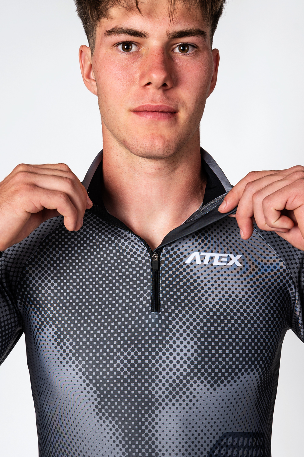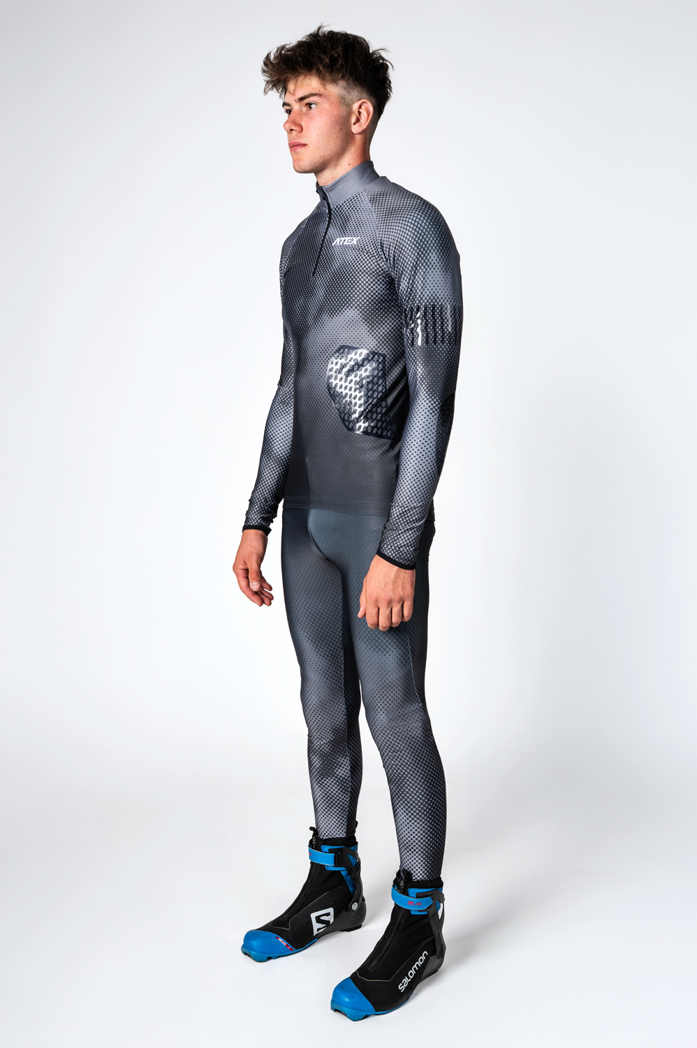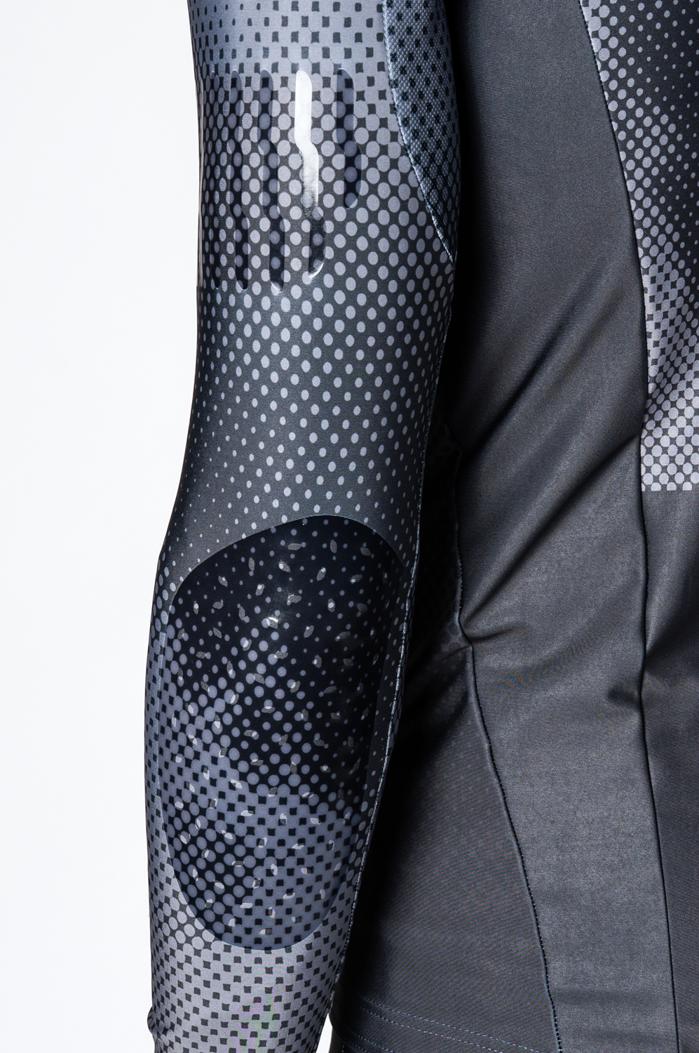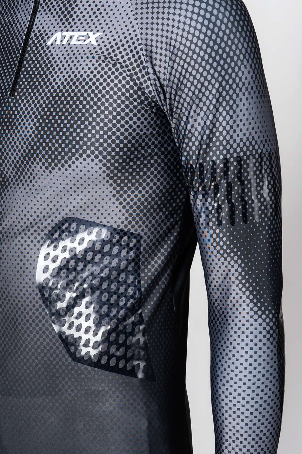 Predná časť dresu má krátky, polstrovaný zips s krytkou. raglánové rukávy sú ukončené elastickým lemom. Spodný okraj dresu obsahuje protišmykovú silikónovú gumu, ktorá zabraňuje vyhrňovaniu pri pohybe.Súčasťou dresu sú protišmykové biatlonové úchyty na zvýšenie stability pri manipulácii so zbraňou, a to na bicepse, boku a oboch lakťoch.