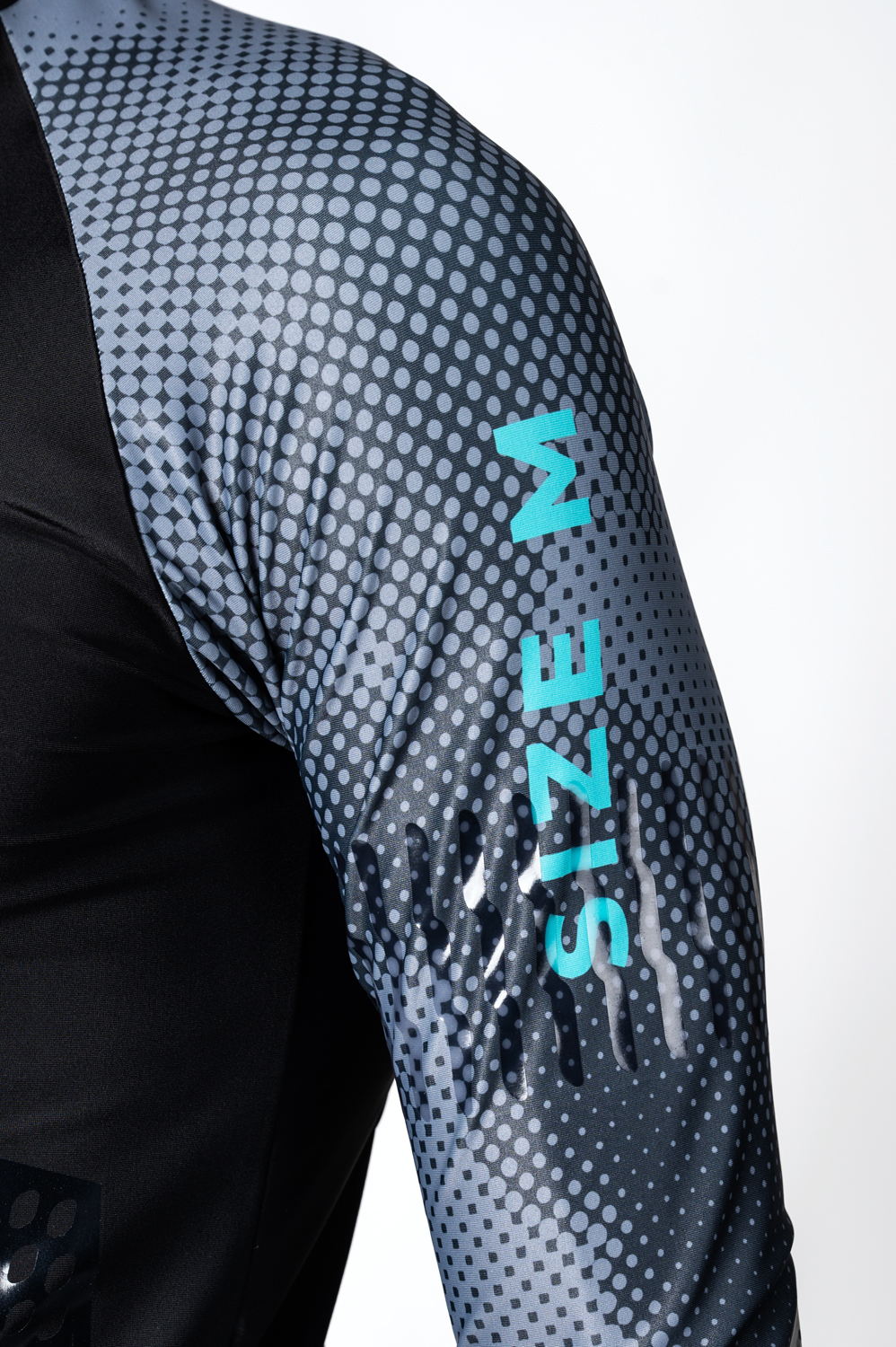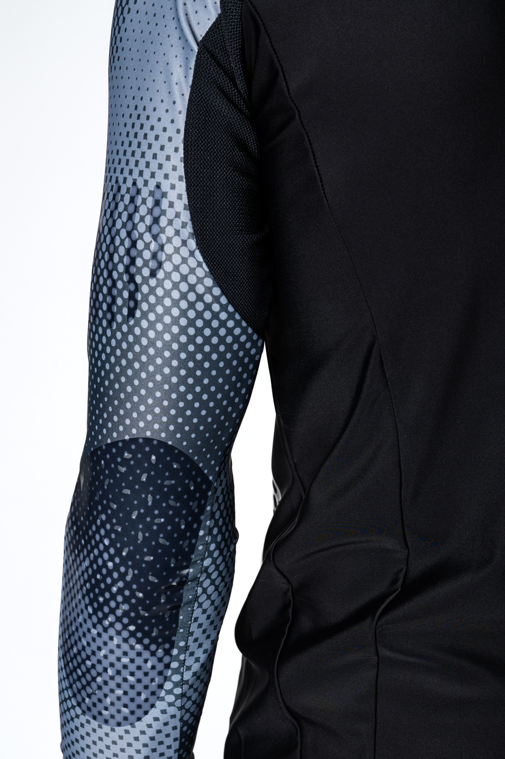 Na prednej strane dresu je krátky podšitý zips s krytkou. Raglánové rukávy sú zakončené elastickým lemom. Spodný okraj dresu obsahuje protišmykovú silikónovú gumu, ktorá zabraňuje vyvaľovaniu pri pohybe. Súčasťou dresu sú protišmykové biatlonové úchyty na zvýšenie stability pri manipulácii so zbraňou, a to na bicepsoch, bočných paneloch a oboch lakťoch.