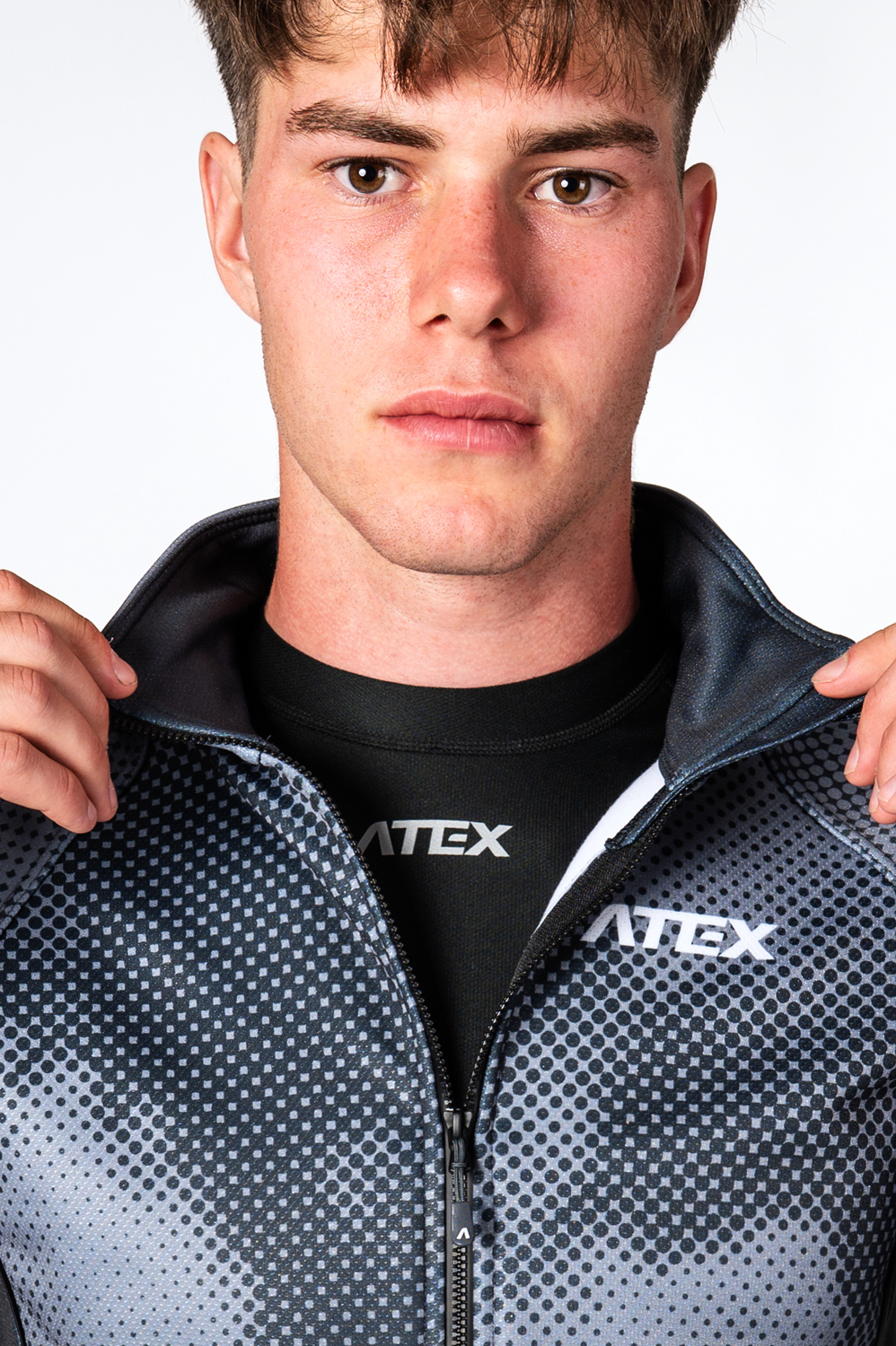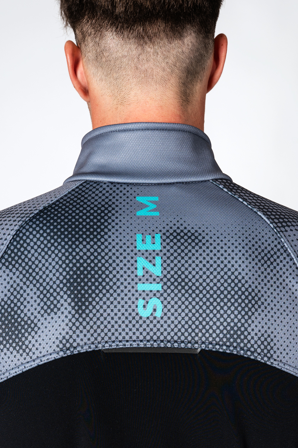 Bežecká bunda SPORT má polopriliehavý strih a je vyrobená v kombinácii dvoch materiálov - hlavnú časť tvorí teplý trojvrstvový membránový materiál ZEROWIND THERMO (materiál s vysokou odolnosťou proti vetru a vode pri zachovaní priedušnosti, s povrchovou úpravou na odvod vody). Stredná časť chrbta a zadná časť rukávov v podpazuší sú vyrobené z veľmi pružného, mäkkého materiálu ROUBAIX pre zvýšenie priedušnosti a lepší rozsah pohybu.