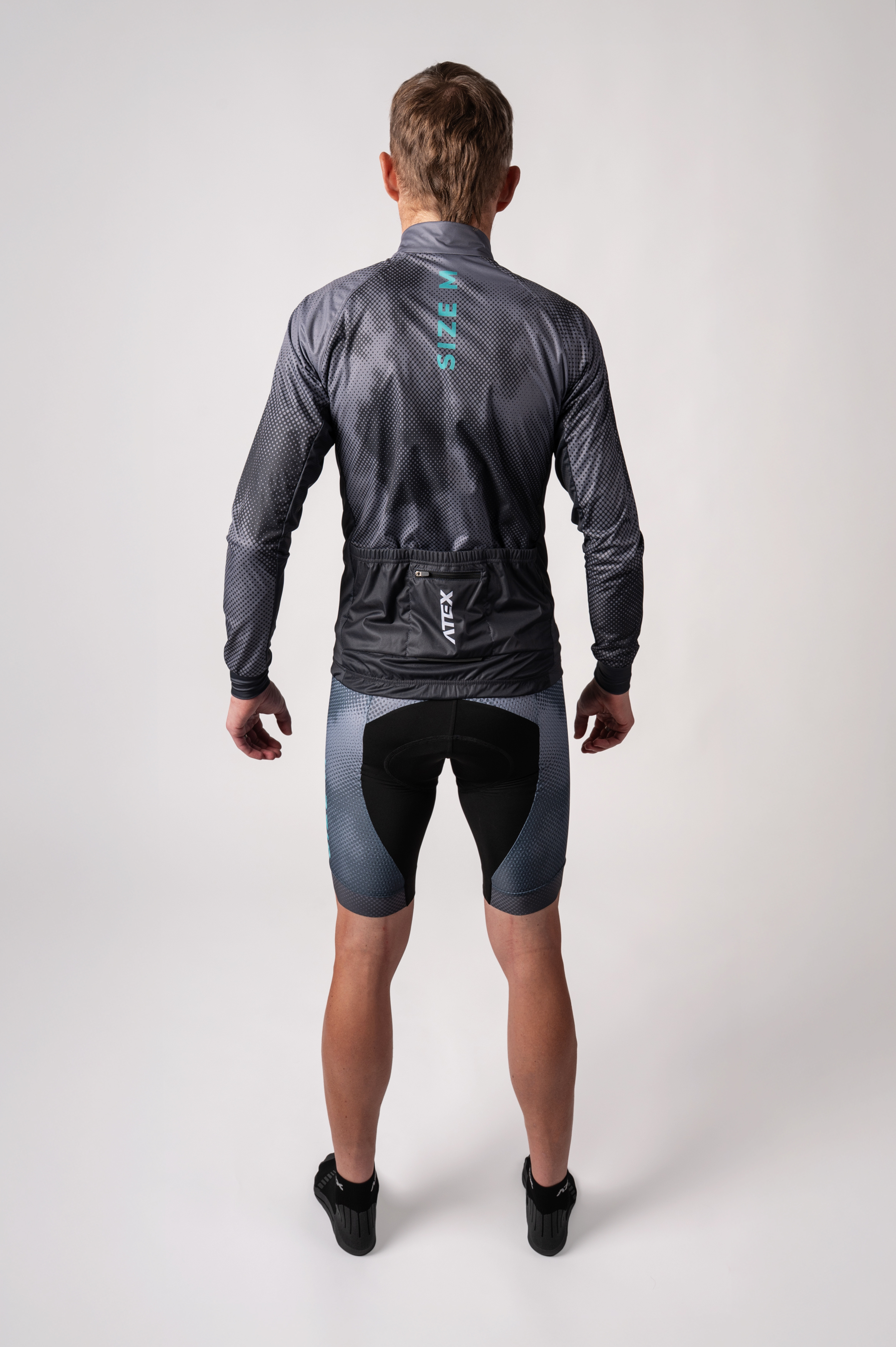 Bunda má polopriliehavý strih, jej tvar vyhovuje typickej cyklistickej polohe - s výrazne kratšou prednou časťou a dlhšou zadnou časťou, čo prispieva k pohodliu pri jazde v zákrute. Vpredu je dlhý zips po celej dĺžke s jazdcom na doraz, podšitý a krytý z oboch strán na jednoduchú manipuláciu a ochranu pred prefúknutím. Dlhé raglánové rukávy sú zakončené manžetou, ktorá udrží rukávy pohodlne na mieste. Na zadnej strane bundy je trojdielne vrecko s menším vreckom na zips uprostred (v detskej verzii bez zipsu) a reflexné prvky na zvýšenie bezpečnosti. Spodný lem so silikónovou protišmykovou gumou zabraňuje vyhrňovaniu počas jazdy.