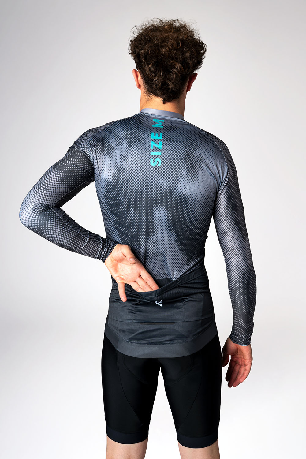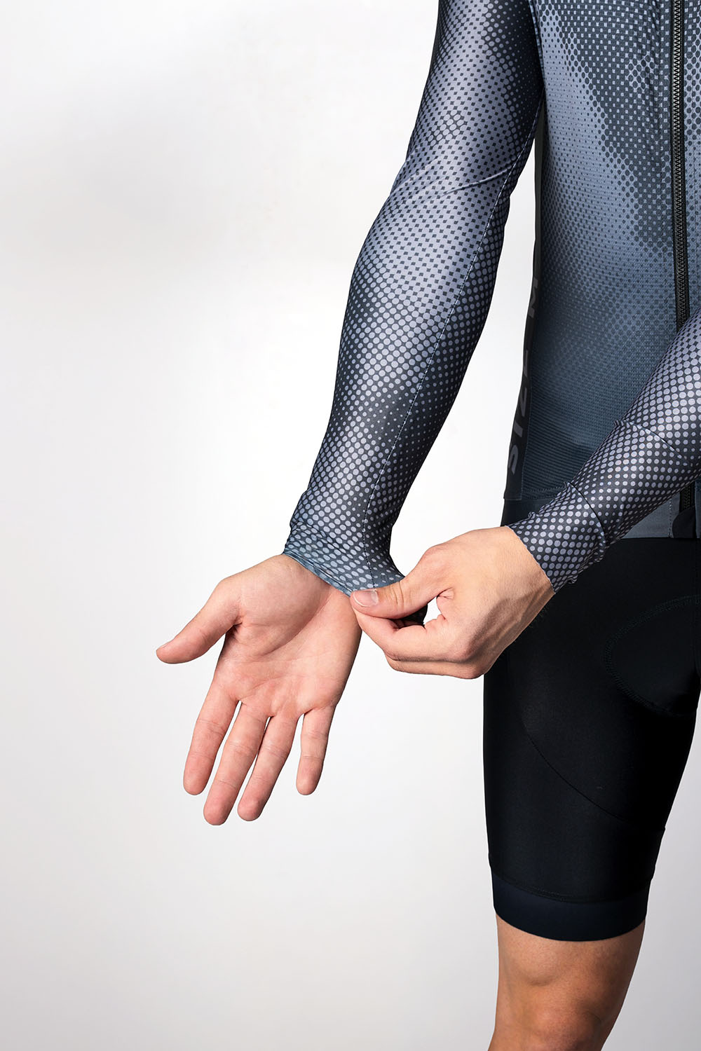 Dres má veľmi priliehavý strih, ktorý kopíruje telo a podporuje aerodynamiku. Na prednej strane je dlhý zips po celej dĺžke s jazdcom so zarážkou, ktorý zabezpečuje bezpečné zapínanie aj pri pohybe. Pri krku je nízky stojatý golier, ktorý neprekáža ani v pretekárskej polohe. Raglánové rukávy majú čistý strih bez dodatočného klinu, čo zaručuje maximálne pohodlie a hladké priliehanie na ruku. Na zadnej strane sa nachádza trojdielne vrecko s reflexným prvkom na uloženie nevyhnutných vecí a zvýšenie bezpečnosti. Spodný okraj dresu je zakončený mäkkou štvorcentimetrovou protišmykovou gumou, ktorá bezpečne drží dres na mieste.