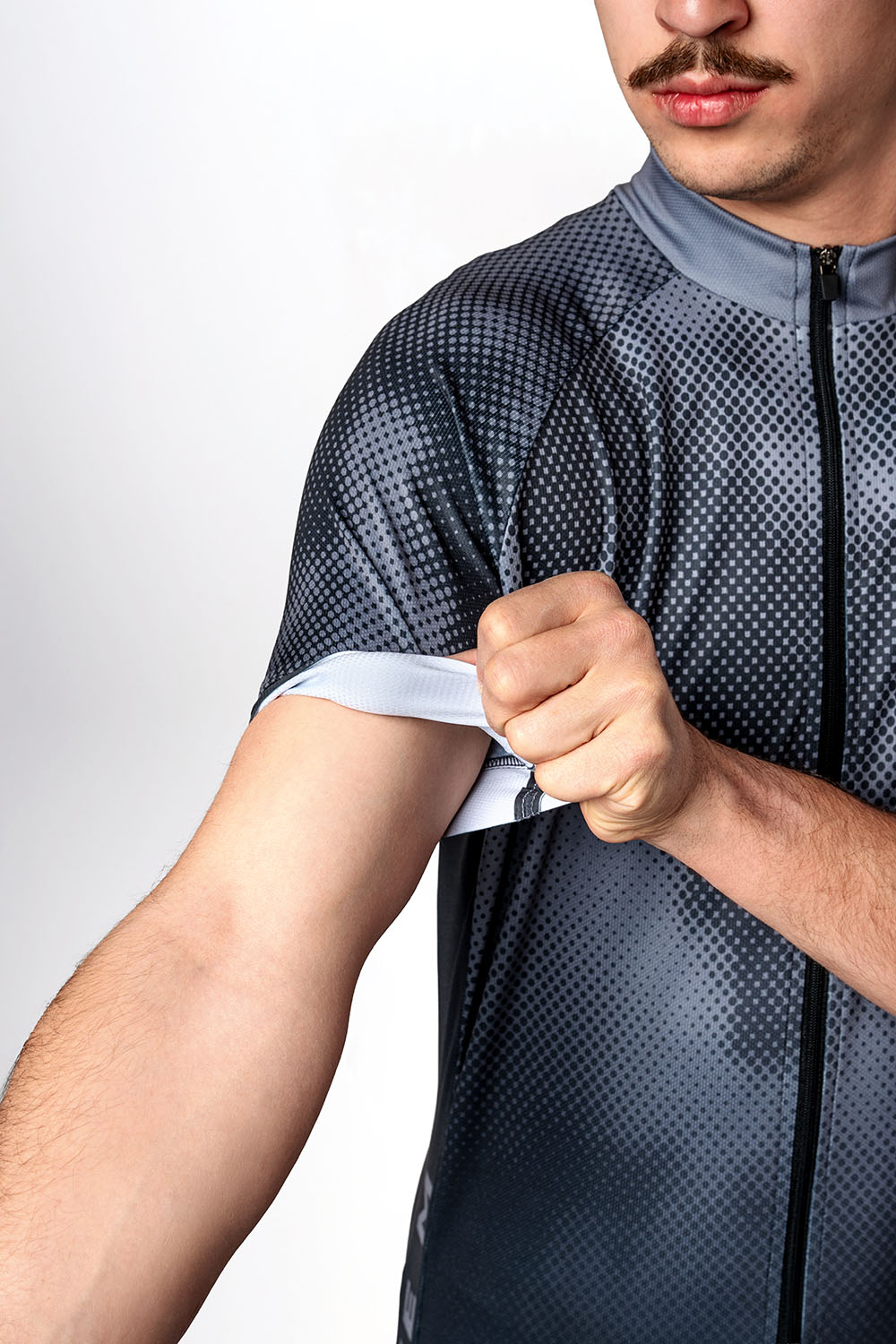 Dres Kickbike má polopriliehavý strih, ktorý zaisťuje pohodlné nosenie počas jazdy. Na prednej časti sa nachádza zips na celú dĺžku s jazdeckou stopkou a pri krku je stojáčik. Krátke raglánové rukávy sú zakončené 4 cm širokou protišmykovou gumou. Zadná časť je výrazne predĺžená a obsahuje trojdielnu vrecku s reflexnými prvkami. Spodný okraj dresu je zakončený protišmykovou silikónovou gumou pre lepšiu stabilitu počas pohybu.