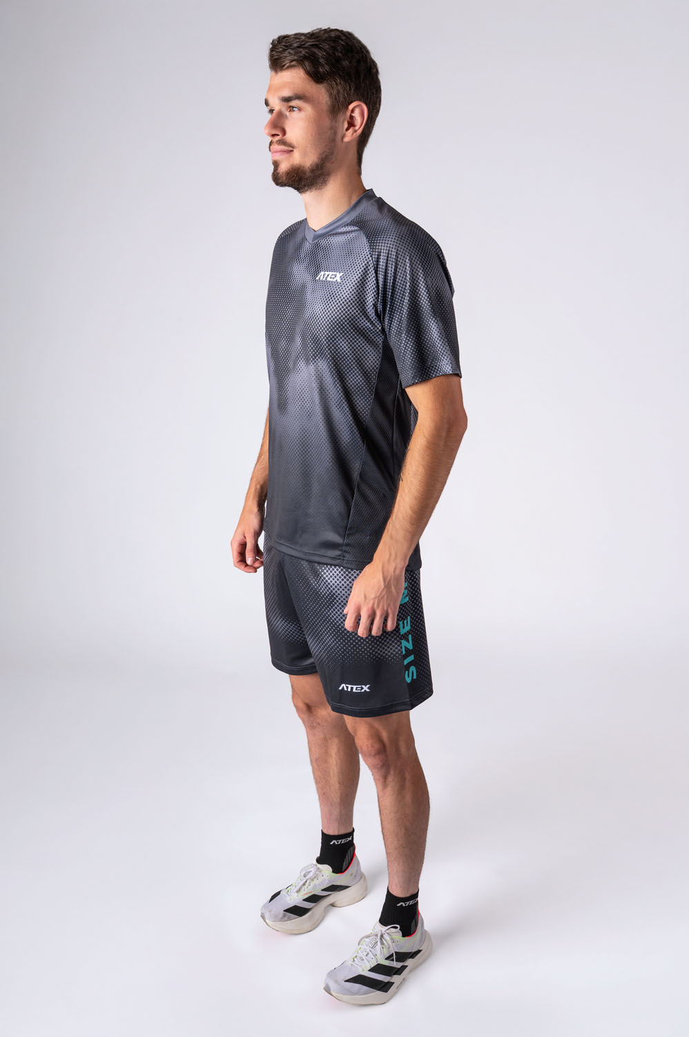 Futbalový dres profi má výstrih do V, krátke raglánové rukávy a tvarované bočné diely.