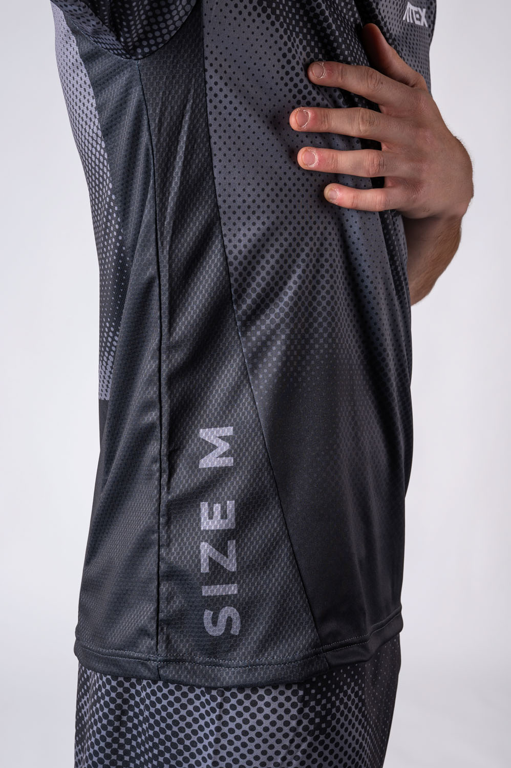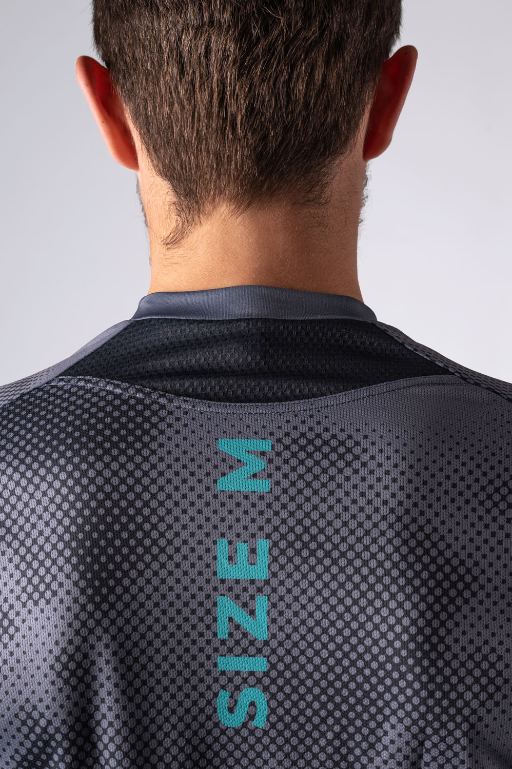 Pre zvýšenie komfortu a úžitkových vlastností je dres vyrobený z troch ľahkých materiálov rôznych štruktúr. Predný diel, rukávy a lem krku z jemného, hladkého, pružného a odolného materiálu Golford, zadný diel z priedušného Coolmaxu Bike, bočné diely a sedlo za krkom z vysoko priedušného a výrazne štrukturovaného materiálu Ekynox.
