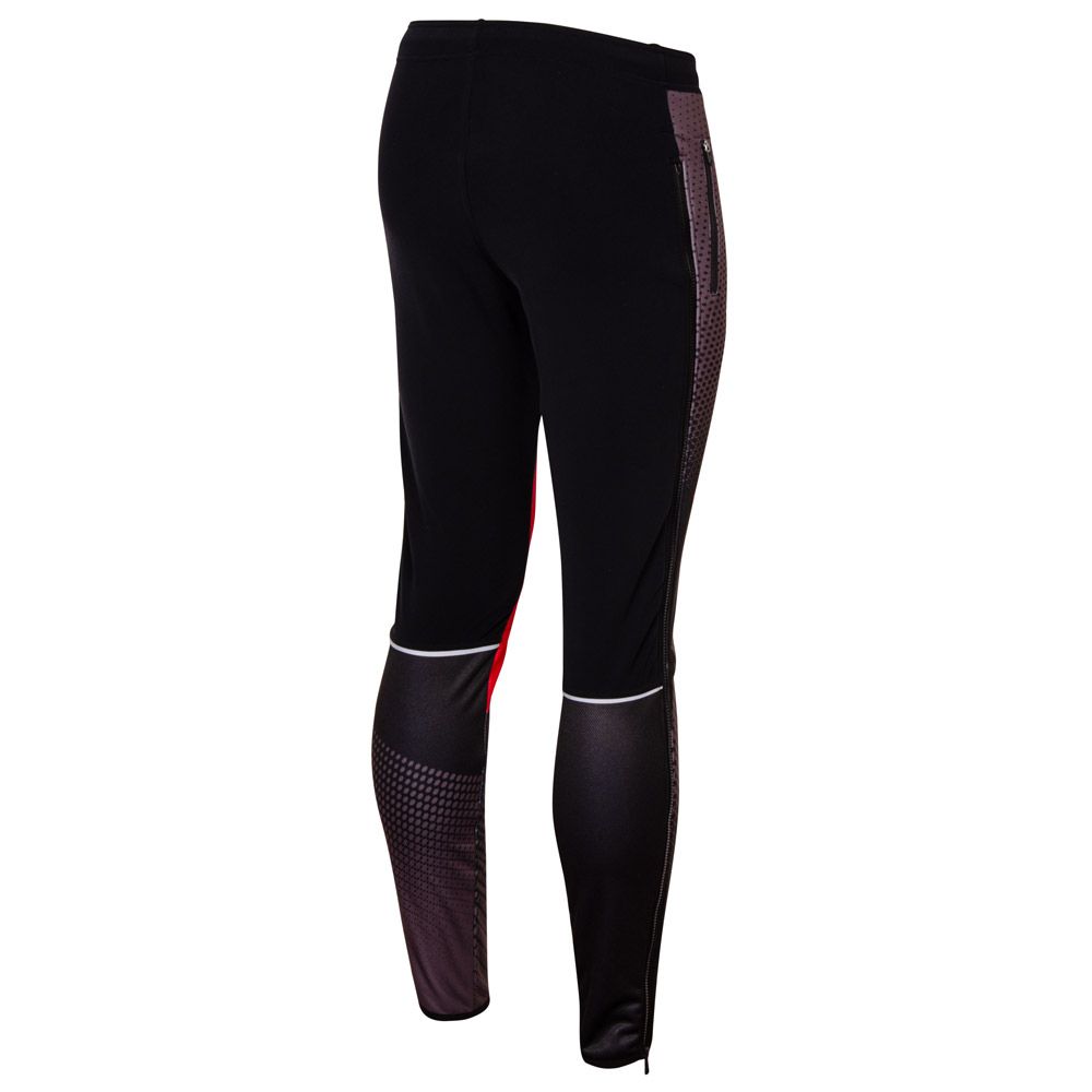 Nohavice majú elastický pás so sťahovacou šnúrkou. Na prednej strane sú dve vrecká na zips s uzatvárateľnými jazdcami. Takmer po celej dĺžke bokov nohavíc sú dlhé zipsy s vodoodolnou podšívkou, ktoré umožňujú variabilné rozopínanie pred alebo po športovom výkone a jednoduché obliekanie cez obuv. Spodné okraje nohavíc sú zakončené elastickým pásom.