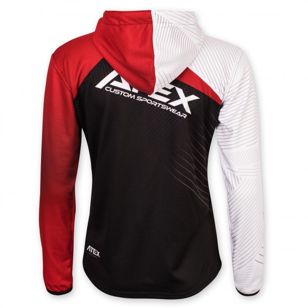 Ľahká dámska športová mikina polopriliehavého strihu má podšitú kapucňu so sťahovacou šnúrkou, celoprepínací zips a dve vrecká na zips, vsadené rukávy zakončené gumou a spodný okraj mikiny, ktorý sa na bokoch nevyťahuje. Reflexné prvky na požiadanie.