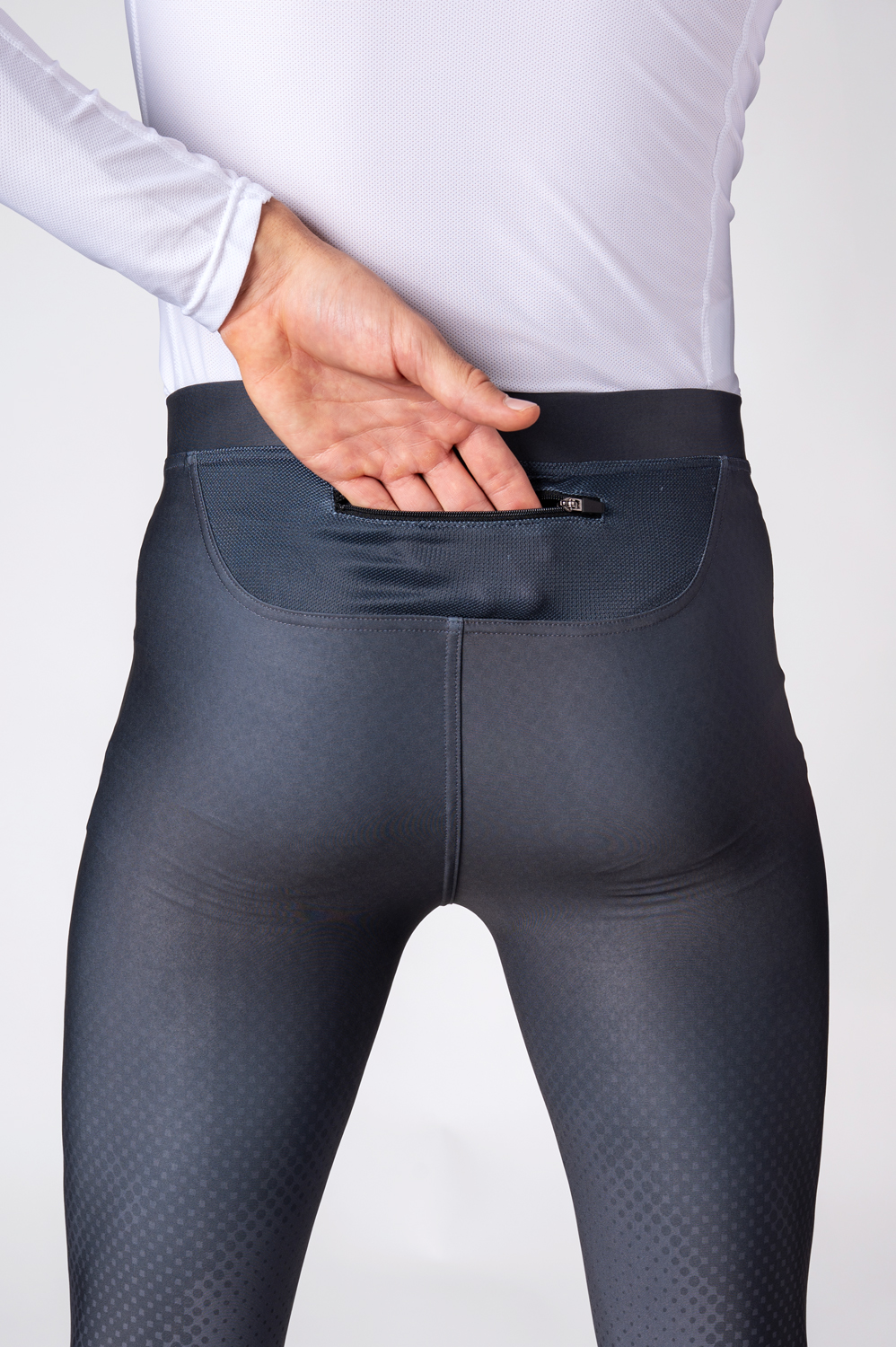 Majú priliehavý anatomicky tvarovaný strih, ktorý sa dokonale prispôsobí telu. V páse je mäkký elastický pás s protišmykovými prvkami, ktorý pomáha legíny bezpečne držať na mieste. Na zadnej strane je praktické vrecko na zips na uloženie drobností, ako sú kľúče alebo telefón.