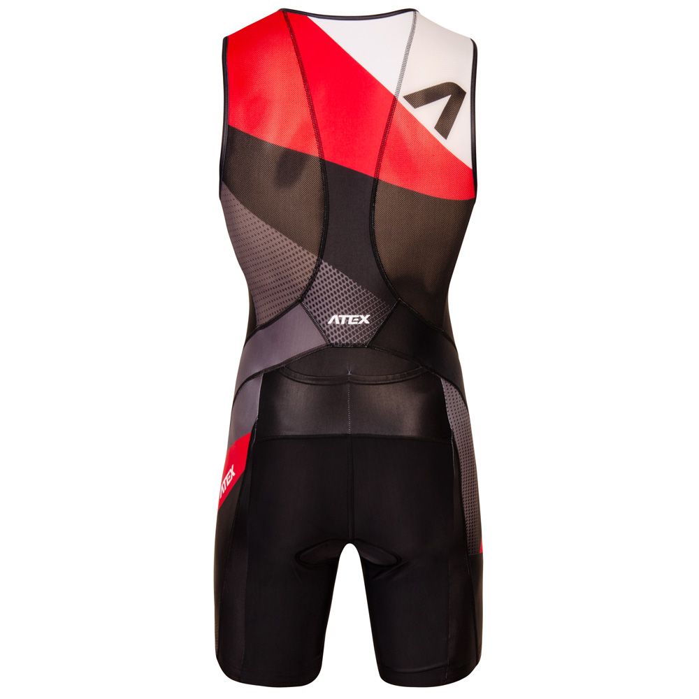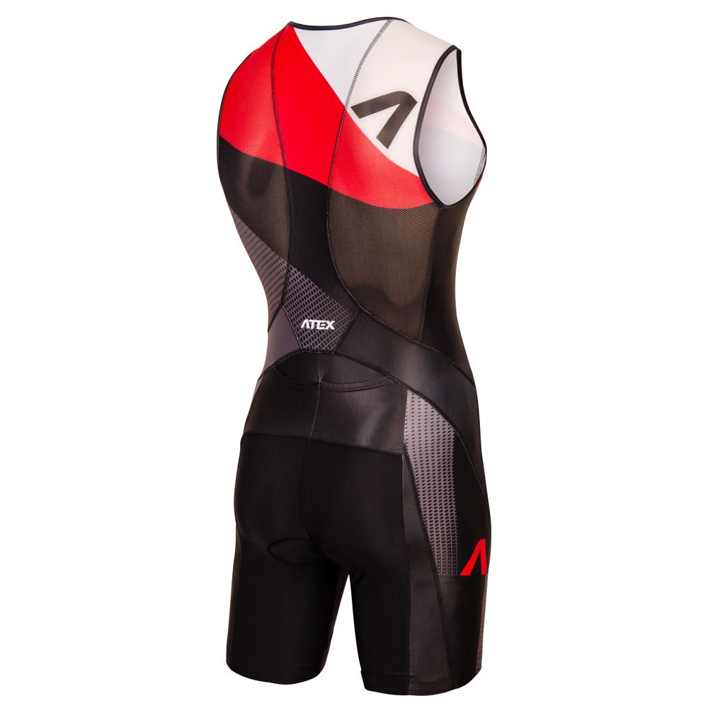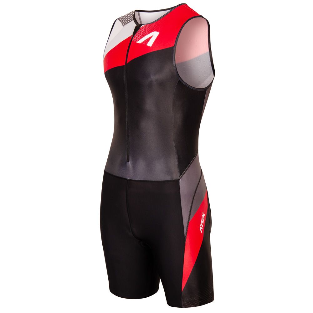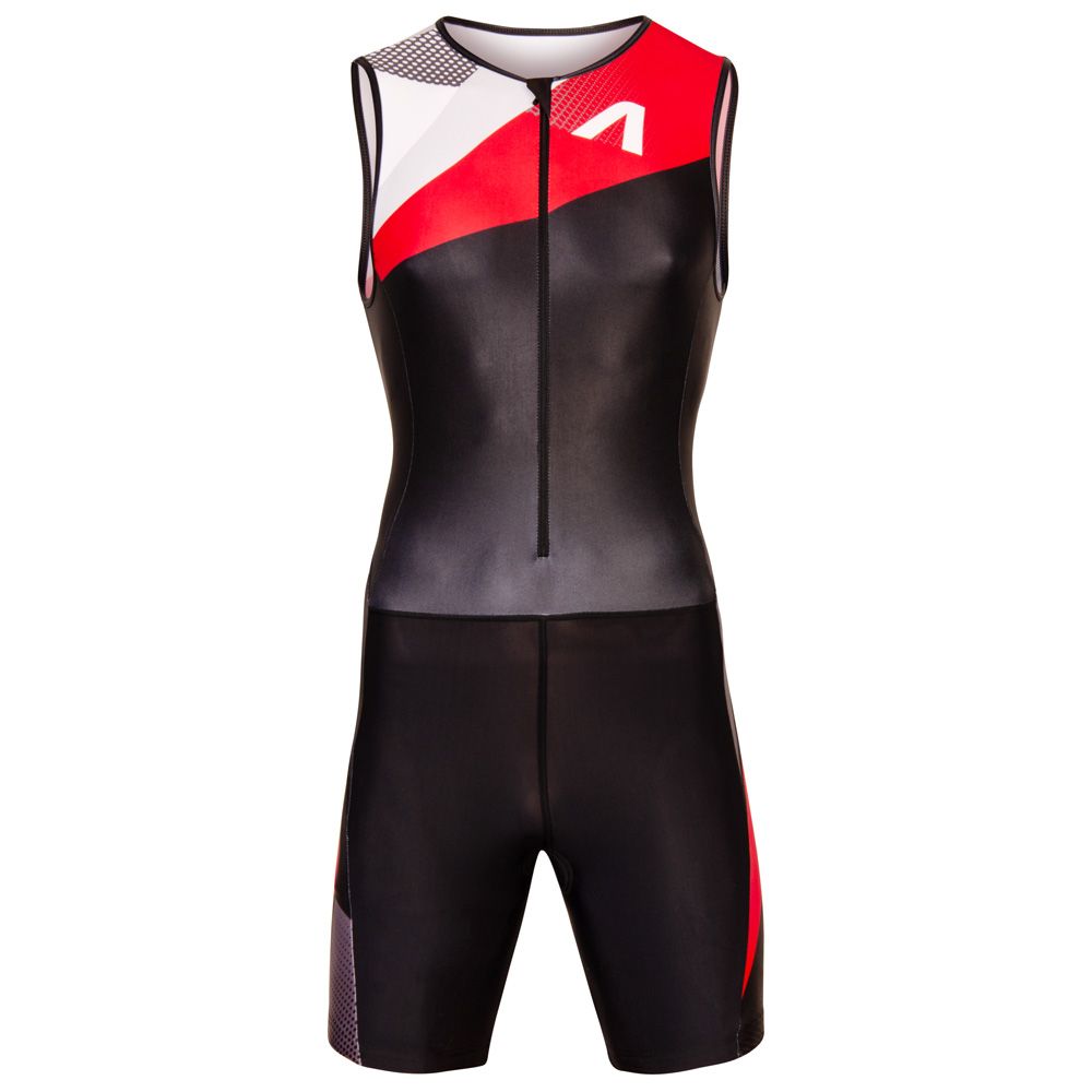 Elastický triatlonový oblek má priliehavý, štruktúrovaný strih a je vyrobený z veľmi elastického materiálu Espan v kombinácii s materiálom Mesh, ktorý sa používa v zadnej časti na zvýšenie priedušnosti a rýchlosti schnutia.