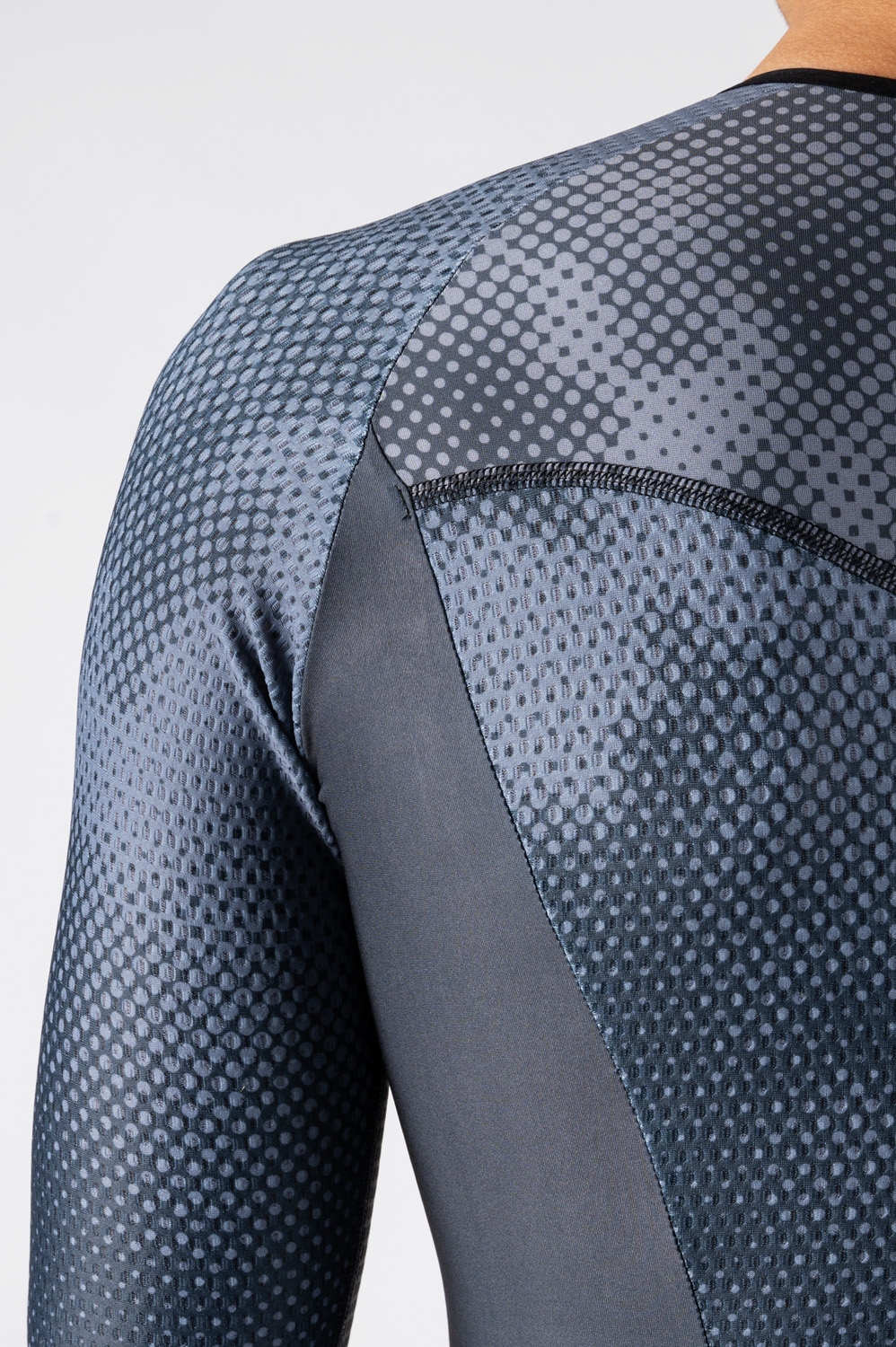 Kombinéza je vyrobená v kombinácii troch najkvalitnejších materiálov. Vrchnú časť tvorí ľahký a mäkký materiál FITEX, ktorý je mimoriadne pružný. Rukávy a stredový zadný panel sú vyrobené z materiálu VELARO LIGHT, ktorý je aerodynamický, s úpletom navrhnutým pre lepšie prúdenie vzduchu a rýchlejšie vetranie. Spodnú časť tvorí kombinácia materiálu VELARO LIGHT na bočných paneloch a extrémne rýchloschnúceho materiálu TRITECH v strede nohavíc, ktorý je ľahký, priedušný, so zvýšenou odolnosťou proti oderu a chlóru.