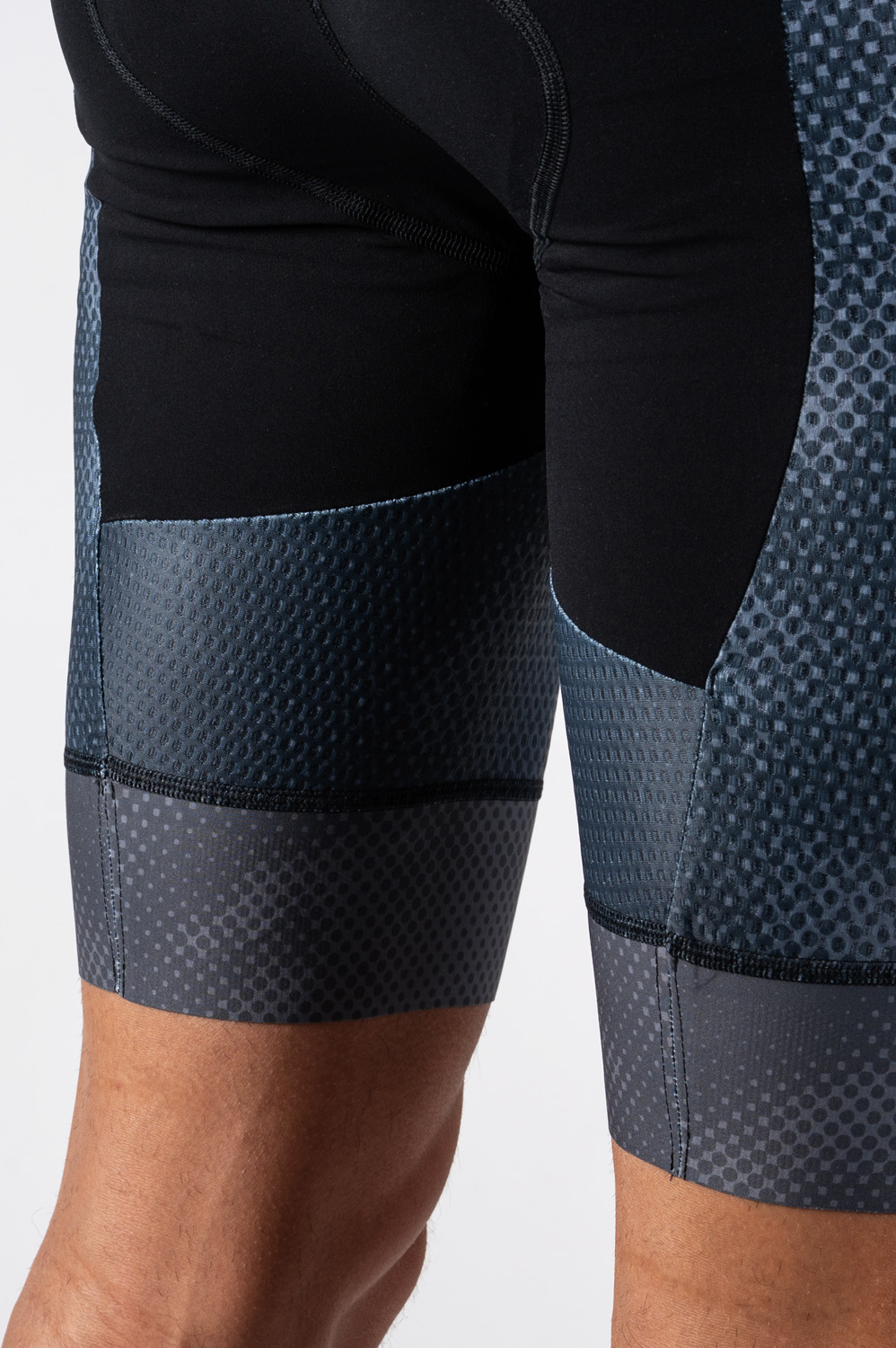 Spodná časť obleku je v páse zvýšená, čím vzniká praktické prekrytie v mieste zapínania. V páse je použitá tenká lepená guma, ktorá zabezpečuje mäkké, ale pevné prispôsobenie. Nohavice siahajú až po kolená a sú zakončené sedempalcovou mäkkou protišmykovou gumou. V rozkroku sú použité lepené spoje bez nití, ktoré minimalizujú trenie a zvyšujú pohodlie. Kombinéza je vybavená podšívkou TRIATLON od renomovanej talianskej značky Elastic Interface. Nechýbajú ani reflexné prvky pre lepšiu viditeľnosť.