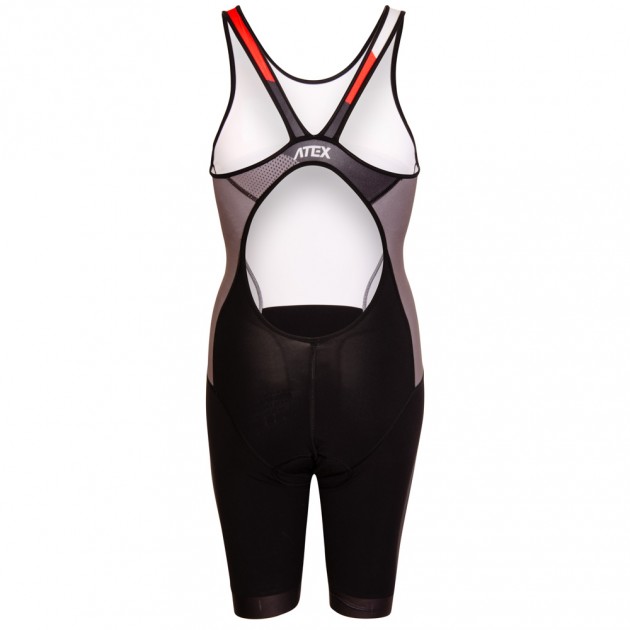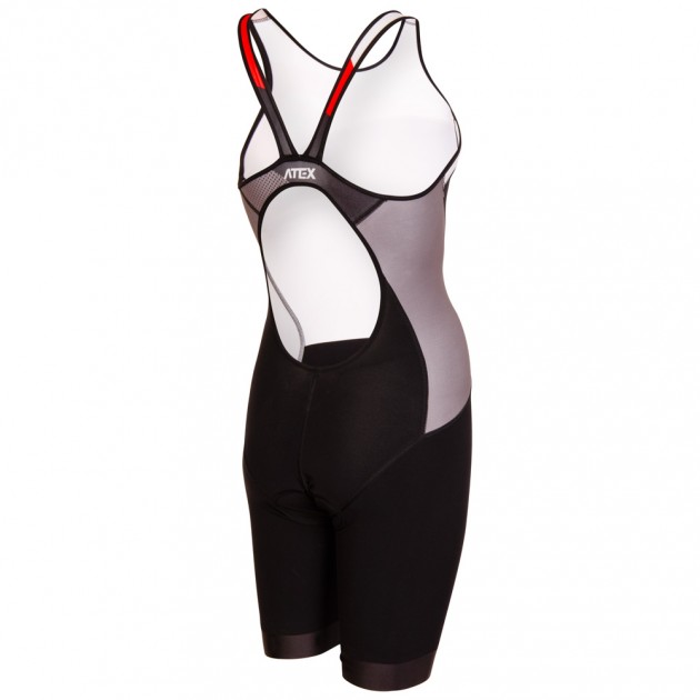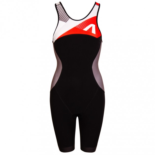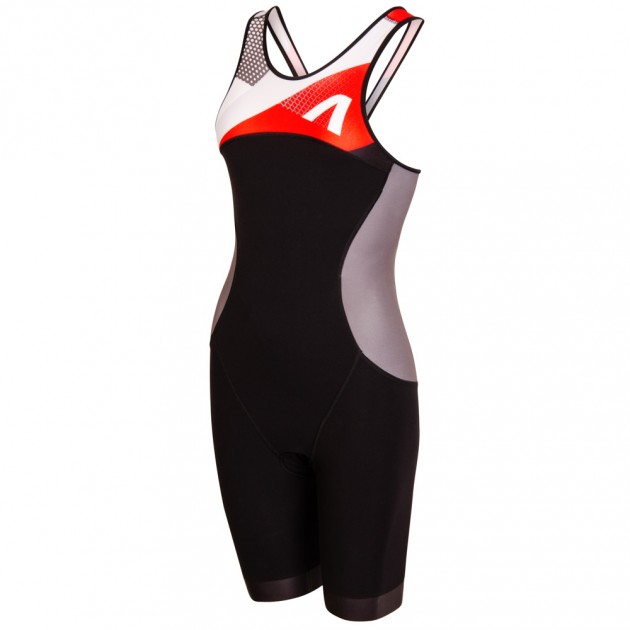 Dámsky triatlonový oblek je vyrobený z revolučného rýchloschnúceho materiálu Tritech a bol vyvinutý v spolupráci s českými špičkovými triatlonistami. Oblek využíva technológiu lepených švov, ktorá podporuje väčšiu funkčnosť použitých materiálov. Oblek má strih s mnohými plavkovými vlastnosťami. Ramienka, spôsob ich uchytenia, veľký okrúhly výstrih na chrbte a špecifické strihanie nohavíc vytvárajú optimálnu funkčnosť a potrebnú pevnosť pri striedaní jednotlivých športových disciplín. Kombinéza má krátke nohavičky s nalepenou širokou protišmykovou gumou. Horná a spodná časť predného dielu sú zdvojené, aby sa znížila priesvitnosť a zvýšila pevnosť. Švy sú ploché. Prieramky, ramienka a zadný otvor sú podšité elastickým, vodeodolným lemom. Oblek má štandardnú všitú triatlonovú podšívku.