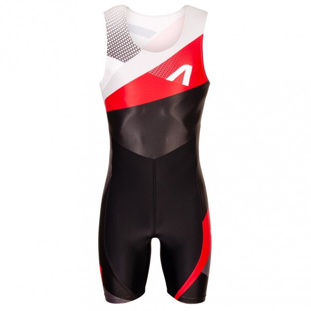 Veslársky oblek ELITE má priliehavý strih a je navrhnutý s ohľadom na funkčnosť a pohodlie pre maximálny výkon. Zvršok v tvare písmena V s minimálnymi spojmi zaisťuje čistý vzhľad a znižuje riziko odierania aj pri dlhodobom používaní. Kombinéza je bez rukávov, má okrúhly výstrih a prieramky so všitou gumou a krátke nohavice sú zakončené bez gumy, čo umožňuje ich voľné posúvanie po stehnách bez nežiaduceho zúženia.