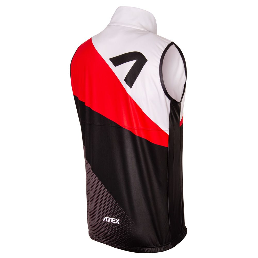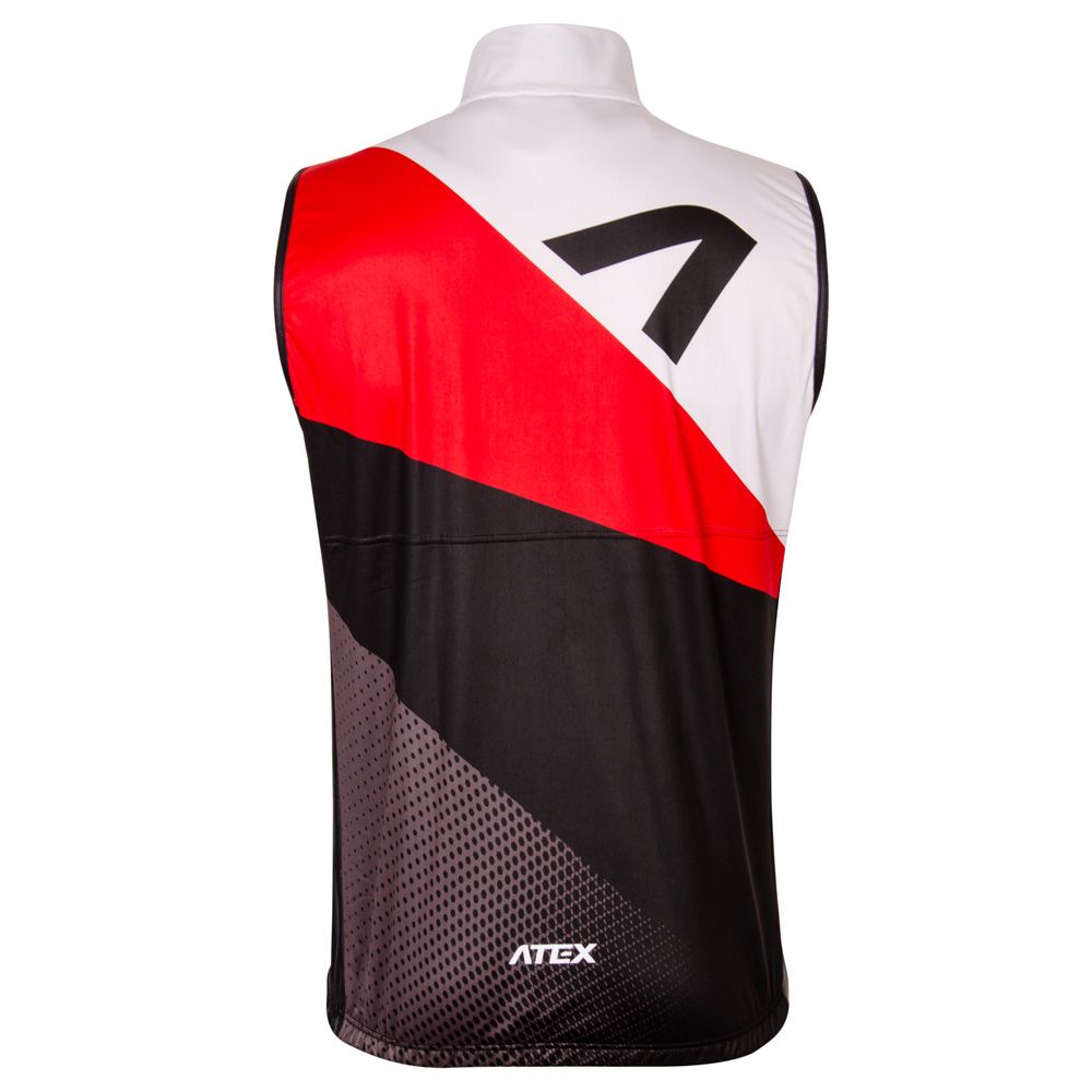 Na prednom diele je zips dlhý približne 30 cm s jazdcom na doraz, prieramky sú podšité mäkkým elastickým materiálom. Zadná časť je predĺžená a spodný okraj vesty je zakončený silikónovou protišmykovou gumou, ktorá drží vestu bezpečne na mieste aj počas intenzívneho pohybu.