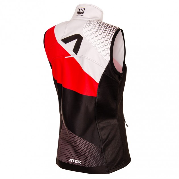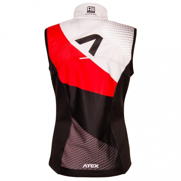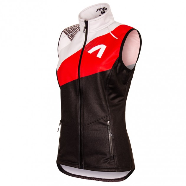Dámska bežecká vesta má priliehavý, výrazne vypasovaný, ženský strih a je vyrobená v kombinácii dvoch materiálov. Hlavné časti vesty sú vyrobené z ľahkého, vetru a vlhkosti odolného trojvrstvového membránového materiálu Zerowind (Light alebo Thermo). Stredná časť chrbta a panely v podpazuší sú vyrobené z veľmi pružného, mäkkého materiálu Roubaix pre zvýšenie priedušnosti a lepší rozsah pohybu. Vesta má anatomicky tvarovaný strih. Stojáčik je v zadnej časti zvýšený a v zadnej časti odľahčený mäkkým, rýchloschnúcim materiálom. Vpredu je po celej dĺžke vodotesný zips s krytkami na oboch stranách a dve vrecká na zips. Prieramky sú lemované elastickým lemom. Spodný okraj vesty je bez gumy a na bokoch sa nevyťahuje, len stredná časť zadného dielu obsahuje na spodnom okraji elastický protišmykový pás proti vykĺznutiu pri behu. Na prednej a zadnej strane sú výrazné reflexné prvky. Strih vesty je navrhnutý ako priliehavá bežecká vesta na pretekársky dres. Ak je potrebné vrstvenie viacerých teplejších vrstiev, odporúčame zvoliť väčšiu veľkosť.